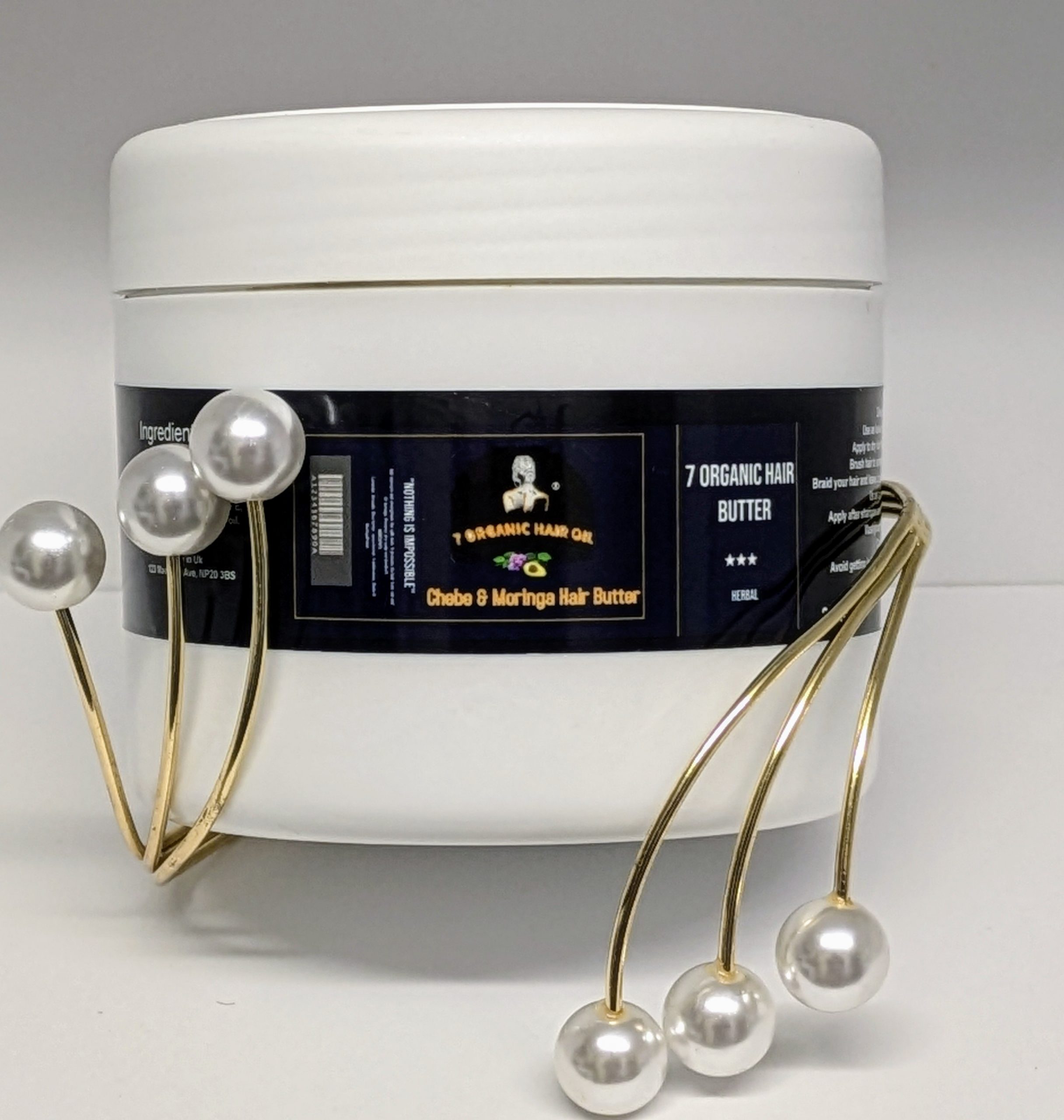 Our Moringa & Chebe Hair Butter is used to promote hair length retention and a great moisturising sealant. It will leave your hair longer even during shredding period, mantain natural hair colour, glow and healthy strands. Made by hand with care. Our 7 Organic hair butter is gentle enough for sensitive scalps to use.