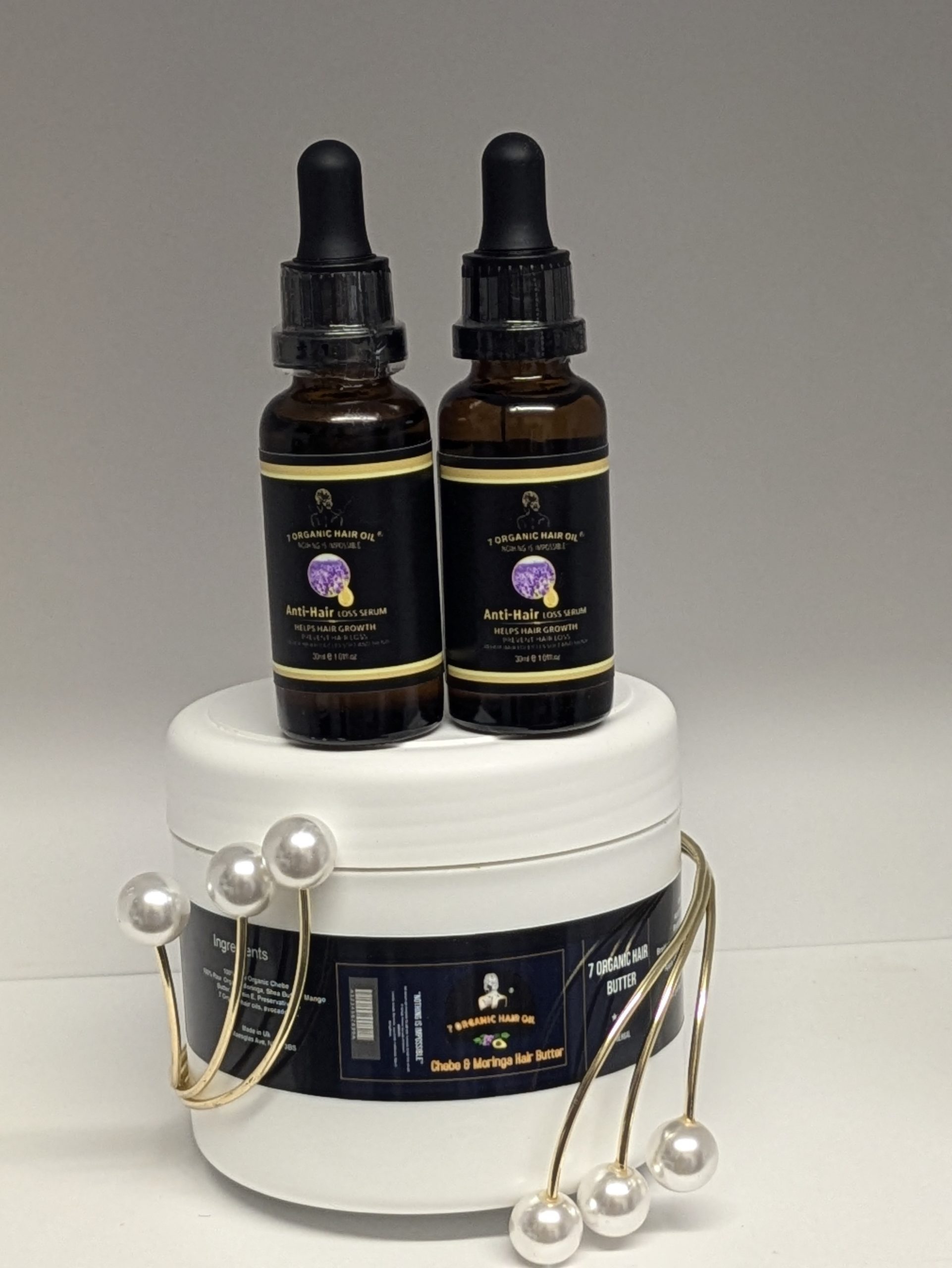 Introducing the 7 Organic Hair bundle, this combo is a lightweight oil that promotes hair growth, prevents breakage, retain length and keep your hair health and shiny. This combo is packed with different kinds of Ayurvedic ingredients, making it one of the best combos on the market. You get the benefits of all in one.