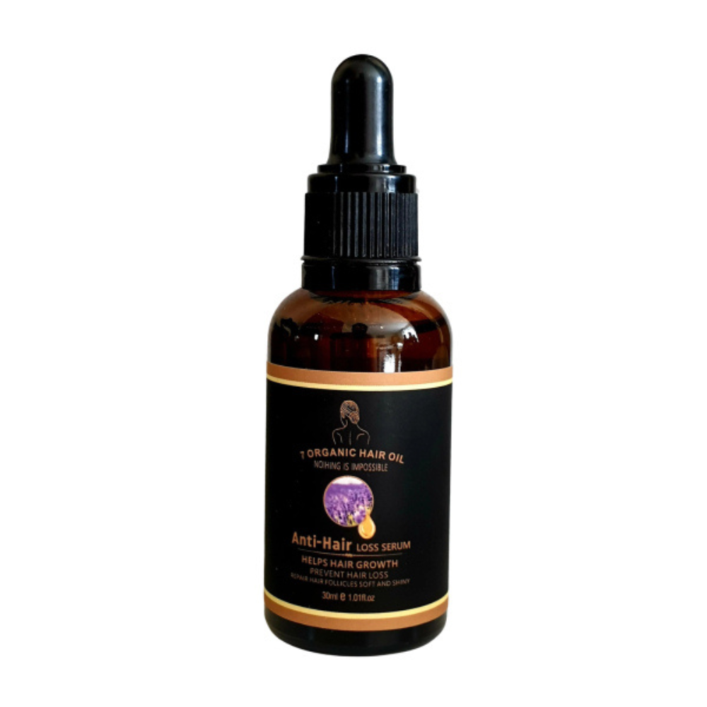 - 7 organic Hair serum is a lightweight oil that promotes hair growth, antibreakage and shines your hair. The oil does not overburden your hair as it is very light. It promotes blood circulation on your scalp allowing nutrients to be adsorbed into the hair follicles, preventing dandruff build up, dry scalp and enforcing good nutrients to be fully used and promote hair growth. 7 organic hair serum does not take long to start working, within 2 week you should start seeing the results. This serum was created after losing hair due to chemotherapy. After 2 months l observed a visible growth and my hair stopped falling off, my Doctor asked me what am doing to prevent my hair from being damaged l couldn’t tell him, it was a secret. I want to share now this benefit to the world, if your hair has stopped growing, dry scalp, dandruff and your not experiencing any volume changes try this oil and be ready to testify, it wont disappoint you.