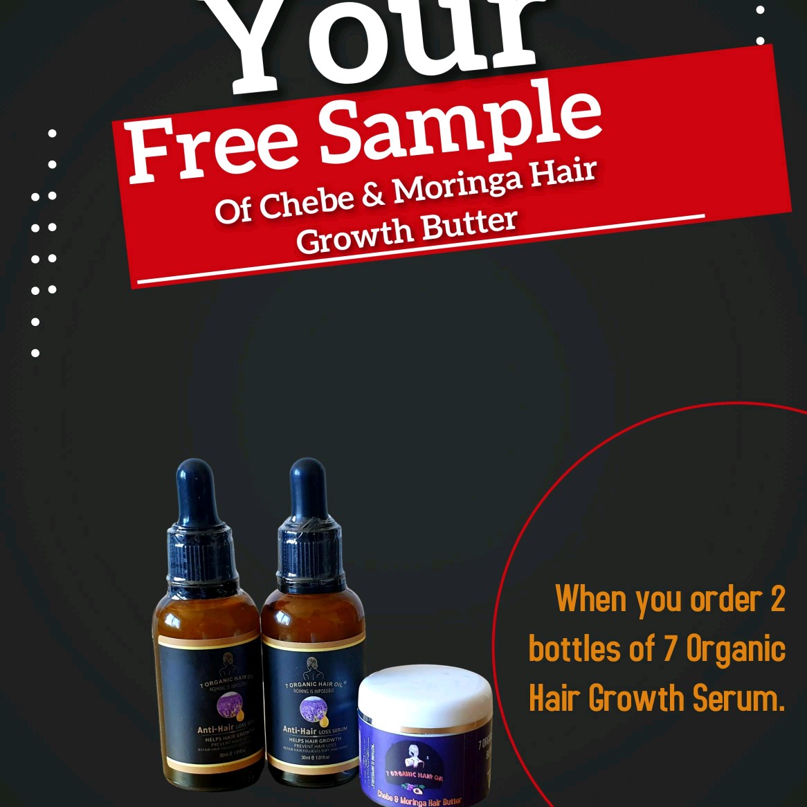 Get 2 bottles of 7 Organic Hair Growth Serum and get a free sample of 7 Organic Chebe & Moringa hair butter 10ml.